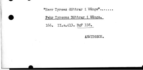 //// I "Herr Tyrses döttrar i Hänge"....... //// f Pehr Tyrsons Döttrar i Vlän^e. //// 166. II.s.AID. DgF 338. //// AK-HDSSON. //// ' - ////