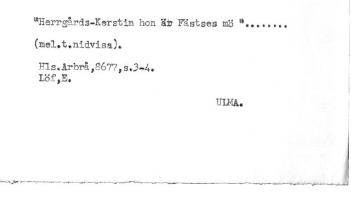 //// "Herrgårds-Kerstin hon är Fästses mö ".+...... //// (mel+t+nidvisa)* //// i //// Hls.Arbrå,8677,s.3-4. //// Löf,E. //// < < //// UU^IA. ////