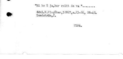 //// "Hi ho å ja,hur rolit de va "........ //// - //// Sdml.V.Vin^ker,10667,s.23-26, 28-40. //// Lundström, J* //// * ////