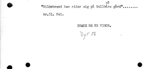 //// ^^ "Hildebrand han rider sig på Gullbårs gård"........ //// nr.51. Mel. //// * //// DRAKE MS KB VISOR. //// I //// * ////