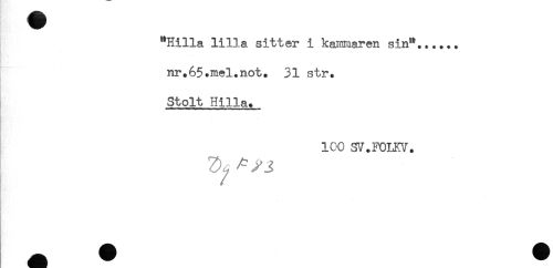 //// "Hilla lilla, sitter i kännaren sin"...... //// nr.65.mel.not. 31 str. //// Stolt Hilla. //// ICO SV.FOLKV. ////