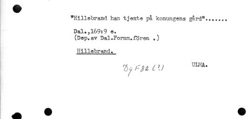 //// "Hillebrand han tjente på konungens gard"....... //// Dal.,169:9 e. //// (Dep.av Dal.Fomm.fSren .) //// Hillebrand. ////