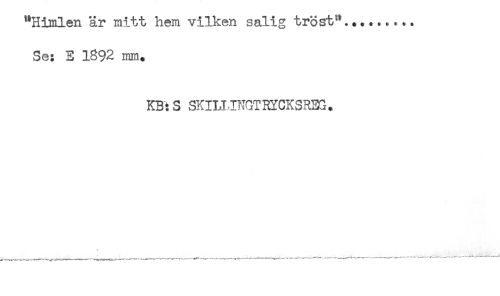 //// "Himlen är mitt hem vilken salig tröst"......... //// Se: E 1892 mm. //// KB:S SKIU.INGTHYCKSREG. ////