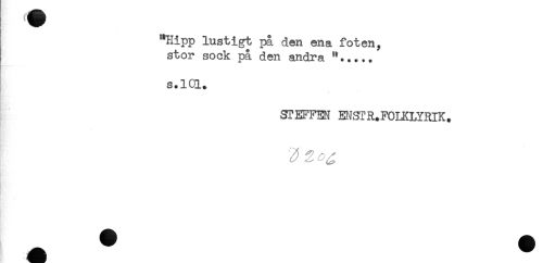 //// "Hipp lustigt på den ena foten, //// stor sock på den andra "..... //// s.lCl. //// STEFFEN MSFR. FOLKLYRIK. //// * € ////