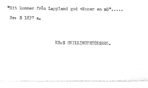 //// "Hit kommer från Lappland god vänner en mö"..... //// Se: S 1837 a. //// KB:S SKILLINGT RYCKSREG. ////