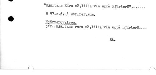 //// Hjärtans kära mö,lilla vän uppa. Hjärterö**.. .. . //// B 97.s.§. 3 str,ref.kom. //// i] //// Hjärterövalsen. //// jfr.:Hjärtans rara mö,lilla vän uppa hjärterö.... //// ) //// RA. //// .______r i ////