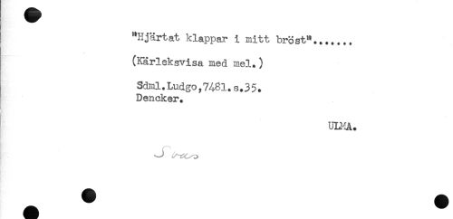 //// "Hjärtat klappar i mitt bröst"....... //// (Kärleksvisa med mel.) //// Sdml.Ludgo,7481.s.3 5. //// Dencker. //// ULMA. //// r ^ ////