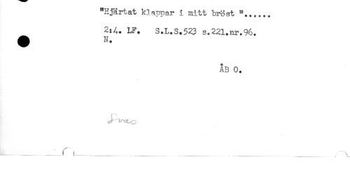 //// "Hjärtat klappar i mitt bröst *...... //// ^ LF. S.L.S.523 s.221.nr.96. //// ÅB 0. //// - ______ ____ ___ ___ ___ . ////