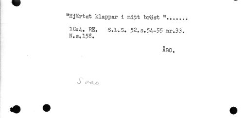 //// t //// "Hjärtat klappar i mitt bröst "....... //// 10:4. RE. S.L.S. 52.s.54-55 nr.33. //// N.s.158. //// ÅBO. //// * //// ^ Hr Si ////