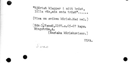 //// (Visa om sviken kärlek.Med mel.) //// (Sdm.l)vansö,2l97.s.65-67 kaps. //// Ringström,A. //// (Enstaka kärleksvisor.) //// UIMA. //// t.' ////