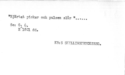 //// "Hjärtat pickar och pulsen slår "...... //// Se: C^ 6. //// E 18QL dd. //// KH:S SK ILUNGT RYCKS REG. //// ! //// ! //// < //// < //// j ////