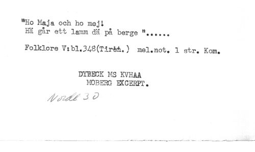 //// "Ho Maja och ho mej i //// Hä går ett lamm dä på berge "...... //// Folklore V:bl.348(TirM.) mel.not. 1 str. Kom. //// DYBECK MS KVHAA //// MOBERG EXCERPT* //// J ^ ////