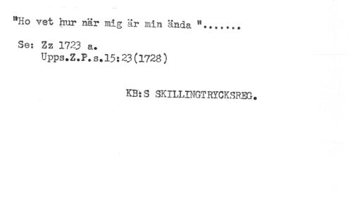 //// "Ho vet hur när mig är min ända "....... //// Se: Zz 1723 a. //// Upps.Z.P.s.l5:23(l728) //// KB:S SKILLINGT RYCKSREG. ////
