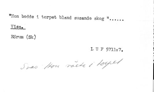 //// ! //// Hon bodde i torpet bland susande skog "...... //// Visa. //// < //// Hörum (Sk) f //// 5 //// S //// L U F 5711:7. ! //// H ////