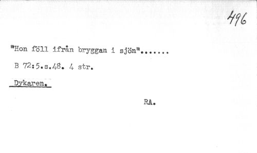 //// "Hon föll ifrån bryggan i sjön"....... //// B 72:5.s.48. 4 str. //// Dykaren. //// RÅ. ////