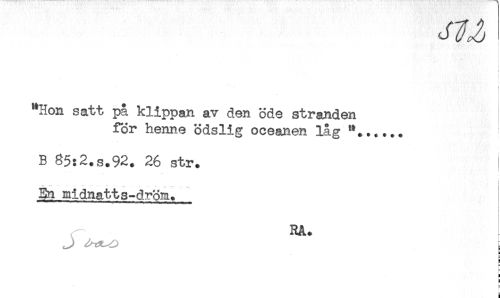 //// t //// i //// ) //// ' //// < i //// '. . . . - i //// - //// "Hon satt på klippan av den öde stranden //// för henne ödslig oceanen låg //// B 85:2.s.92. 26 str. //// < //// < //// En midnatts-dröm. //// * //// ! //// RA. //// = //// H //// H //// a ////