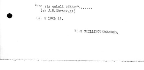 //// "Hon sig enkelt kläder'*....... //// (av J.H.Chrönvall) //// ^ Se: E 190S t3. //// KB:S SKILUNGTRYCKSREG. //// -"^-^-v-JT r-------______ ////