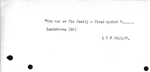 //// "Hon var av fin familj o firad mycket "...... //// t //// } //// ! //// ! //// Landskrona (Sk) //// f //// ! //// L U F 2942:27. ////