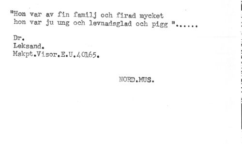//// "Hon var av fin familj och firad mycket //// hon var ju ung och levnadsglad och pigg "...... //// Dr. //// Leksand. ' //// Mskpt.Visor.E.U.40165. ! //// s //// NORD.MUS. ! //// & //// ) //// i ////