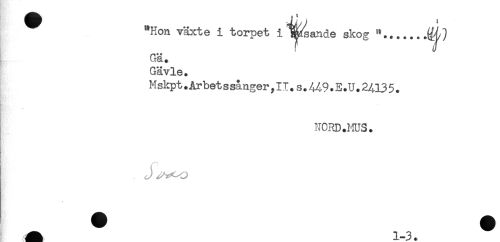 //// "Hon växte i torpet i^^ande skog "....... //// Gä. //// Gävle. //// M skpt.Arbet s sånger,11.s.4Å9.E.U.2413 5. //// NORD.HUS. ////