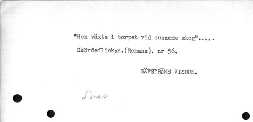 //// "Hon växte i torpet vid susande skog"..... //// Skördeflickan.(Romans), nr 56. //// SÄFSTRCMS VISBOK. ////