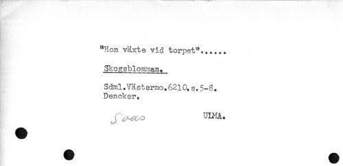 //// "Hon växte vid torpet"...... //// * //// SkoRsblomman. //// - //// Sdml. Västermo. 6210. s. 5-6. //// Dencker. //// - //// J J LTJIA. ////