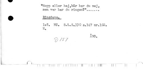 //// I **Hopp eller hej,här har du mej, //// ! men var har du ringen?"....... //// ^^ Ringdans. //// 1:8. MU. S.L.S.330 s.147 nr.102. //// N. //// * //// , ÅBO. //// t //// ,_. ._. _ - . rimn-iiii m-- nr- -m ////
