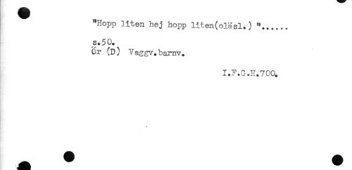 //// "Hopp liten hej hopp liten(oläsl.) "...... //// s. 5 0. //// 6r (D) Vaggv.barnv. //// I.F.G.H.7C0. ////