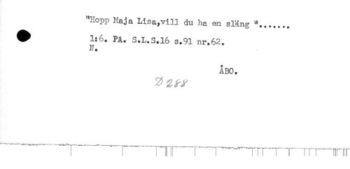 //// "Hopp Maja Lisa,vill du ha en släng //// # 1:6. PA. S.L.S.16 s.91 nr.62. //// N. //// ÅBO. ////