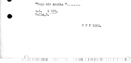 //// "Hopp min Annika "........ //// s.6. D 239. //// ^ Valla,B. - //// V F F 1020., //// ! ////
