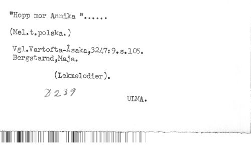 //// "Hopp mor Annika //// (Mel. t.polska.) //// Ygl.Vartofta-Åsaka,3247:9. s. 105. //// BergstamdyMaja. //// (Lekmelodier). //// ' UH-1A. ////