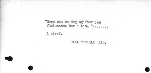 //// "Hopp som en dag ogifter jag //// fästmannen bor i Lima //// 1 strof. //// DALA FOKNSAL 116. ////