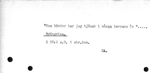 //// "Hos bönder har jag tjänat i manga herrans år "..... //// Drän^visa. //// B 58:2 s*9. 5 str.kom. //// RA. //// - ////