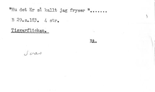 //// "Hu det är så kallt jag fryser "....... //// B 29.s.183. 4 str. //// Tiggarflickan. //// RA. //// J ////