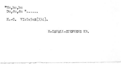 //// "HUyhUyhU //// Du,du,du .... //// H.-C. VI:G:5:A(334). //// H-CAVåLL-SrEPHBNS KB. //// -___------T------- ------r- .....- - ////
