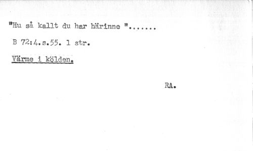 //// *Hu så kallt du har härinne "....... //// B 72:4.s.55. 1 str. //// Värme i kölden. //// ) //// RA. //// * ////
