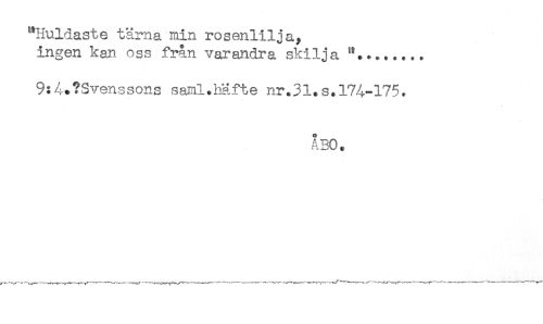 //// "Huldaste tärna min rosenlilja, //// ingen kan oss från varandra skilja "**...... //// 9:4*?Svenssons saml.häfte nr.31.s,174-175. //// ABO. ////