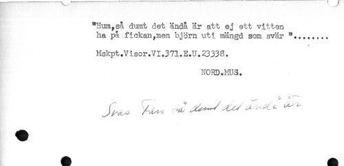 //// "Hum,så dumt det ändå är att ej ett vitten //// ha på fickan,men björn uti mängd som svär //// * //// Mskpt.Visor.VI.371.E.U.23338. //// NORD.MUS. ////