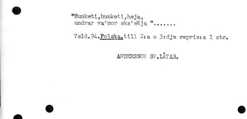 //// ^^ "Hunket i, hunk et i, he j a, //// undrar va'mor ska'säja //// Vsld.%.Polska.tili 2:a o 3:dje repris: a 1 str. //// ANDERSSON SV.LÅTAR. ////