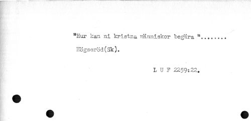 //// "Hur kan ni kristna människor begära **........ //// Högserod(Sk). //// L U F 2259:22. //// - ////