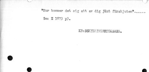 //// "Hur kommer det sig att av dig jämt förskjuten"...... //// Se: E 1373 p3. //// KB: SSKILIJHGREYCKSREG . //// * //// . ////