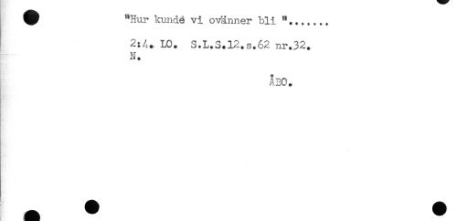 //// ^ "Hur kundé vi ovänner bli "....... //// LO. S.L.S.12.S.62 nr.32. //// N. //// HA * ) //// ÅBO. ////