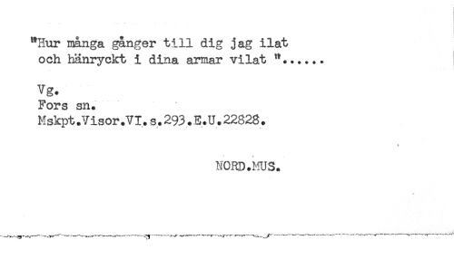 //// "Hur många gånger till dig jag ilat //// och hänryckt i dina armar vilat ..... //// Vg. //// Fors sn. //// Mskpt .Visor .VI. s. 293. E. U.22828. //// * //// NORD.MUS. //// * //// --------^---t-..jf"-------- -----" -- ////