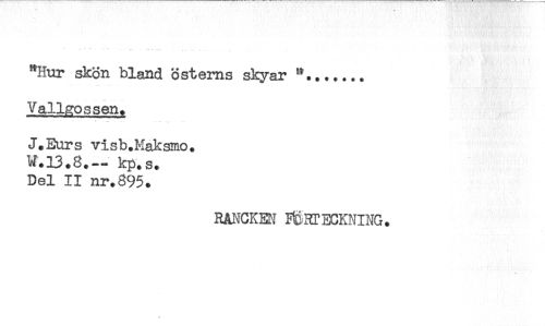 //// "Hur skön bland östems skyar //// Vallgossen* //// J.Eurs visb.Maksiao. //// M.13.8.- kp.s. //// Del II nr.895. //// RANCKBI F§BTECKNING. ////