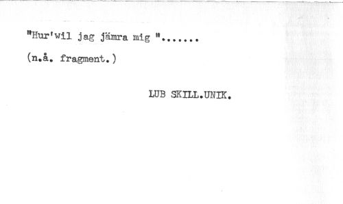 //// ** - ... ' ...,, //// "Hur'vil jag jämra mtg "....... //// (n.å. fragment.) //// LUB SKILL.UNIK. ////