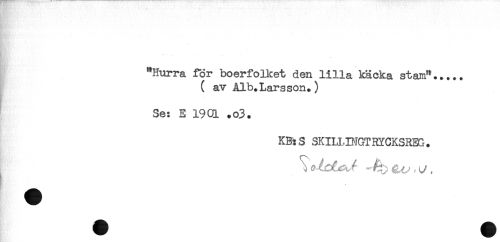 //// "Hurra för boerfolket den lilla käcka stam"..... //// ( av Alb.Larsson.) //// Se: E 19C1 .o3. //// KB: S SKILLINGTRYCKSRm. ////