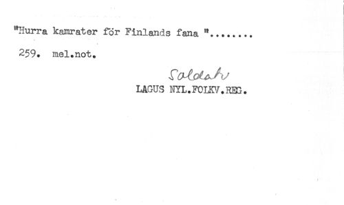 //// "Hurra kamrater för Finlands fana //// 259. mel.not. //// ! //// LAGUS NYL.FOIKV.KEK. //// r //// / ////