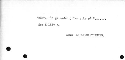 //// K; //// K - //// ^Hurra låt ^ medan julen står på //// " //// Se: E 1839 s. //// KB:S SKILLINGTRYCKSREG. //// ^ y H ////