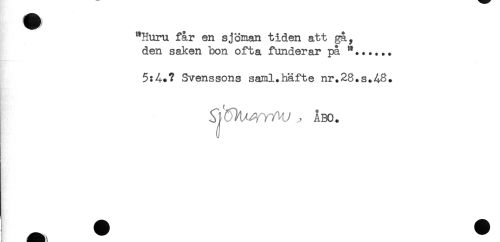 //// ) M //// "Huru får en sjöman tiden att gå, //// den saken bon ofta funderar på //// 5:4.? Svenssons saml.häfte nr.28.s.48. //// , ÅBO. ////