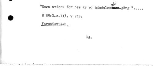 //// "Huru ovisst för oss är ej händelsea^gång "..... //// ^ B 85:2.s.ll3. 7 str. //// Forsnäsvisan. //// RA. //// "" -^ ---___. ^ . _ ^ ..^T_____ ////